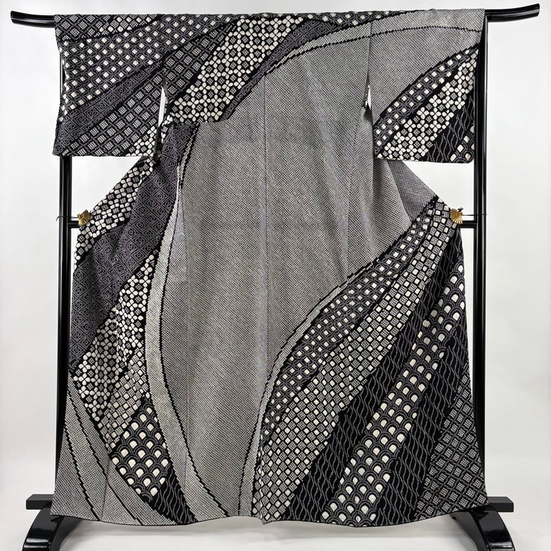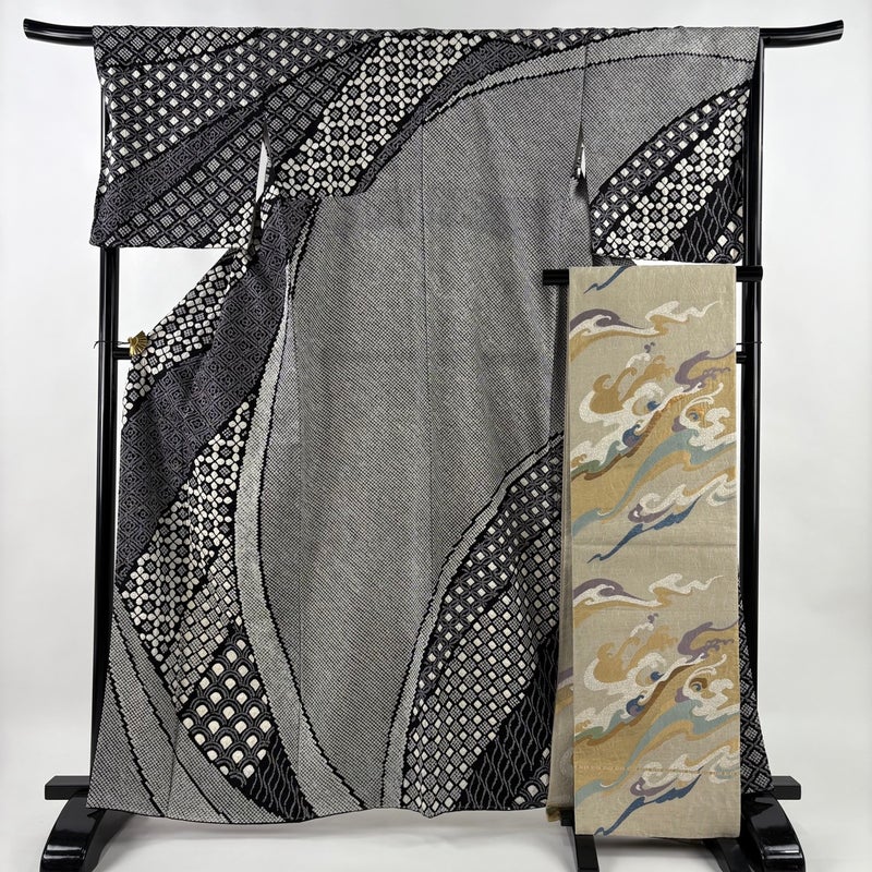 【訪問着】 黒系 黒 名品 A 約160cm~約169cm 裄丈67cm-68cm (L)size 袖丈48cm 30000- 美品 五万以下