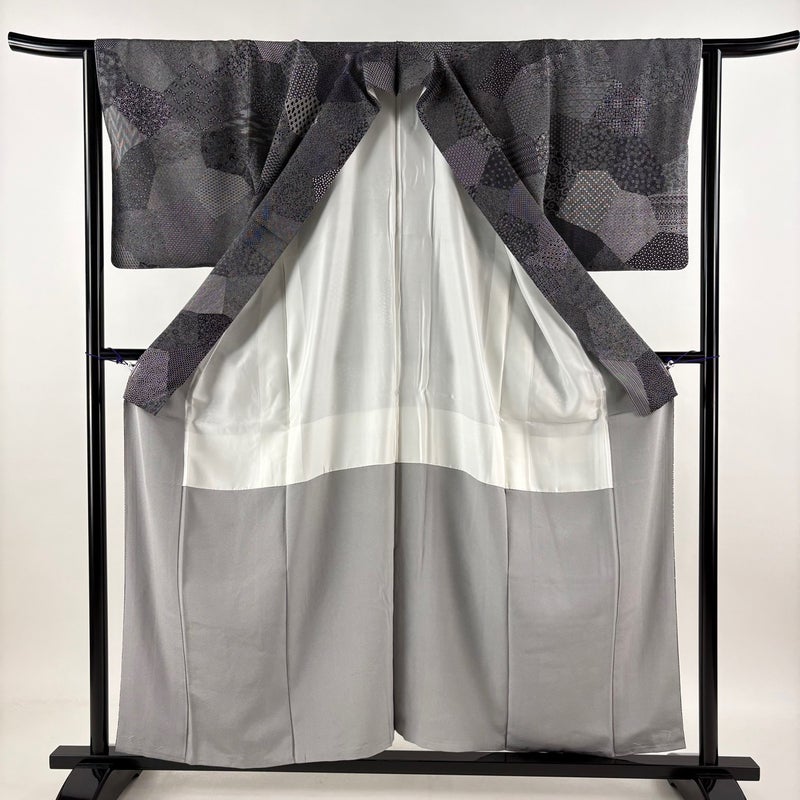 【訪問着】 灰色系 黒灰 秀品 A 約150cm~約159cm 裄丈63cm-64cm (M)size 袖丈49cm 7990-9980 美品 二万以下