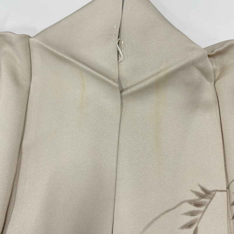 帯次第で幅広くお使いいただける素敵な訪問着です。 帯により格式を変える事の出来る印象のお着物は、様々に場面で活躍してくれることでしょう。 ※身丈・裄丈の縫込みの長さは測っておりません。 衿周りや両袖口中に汚れ、表地所々にシワがございます。また、上前から後身頃にかけて柄のズレがございます。 リユース品としては良い状態で、まだまだご活用頂けると思われます。 ※なお、厳しく商品の状態確認を行っておりますが、記載の汚れ以外にも見落とし箇所がある可能性がある旨ご了承いただけますと幸いです。 沢山の商品の中からご覧いただき誠にありがとうございます。