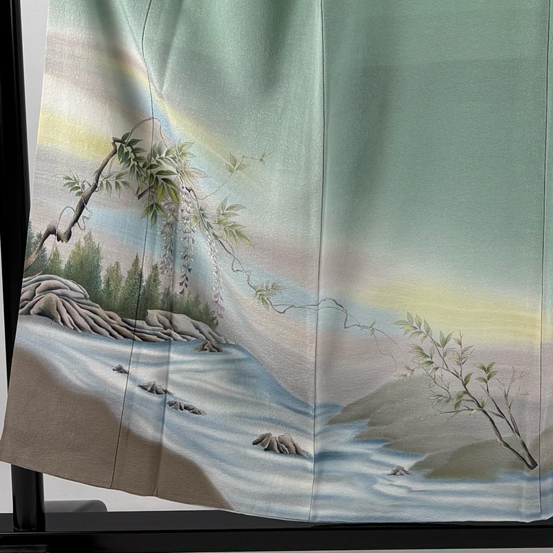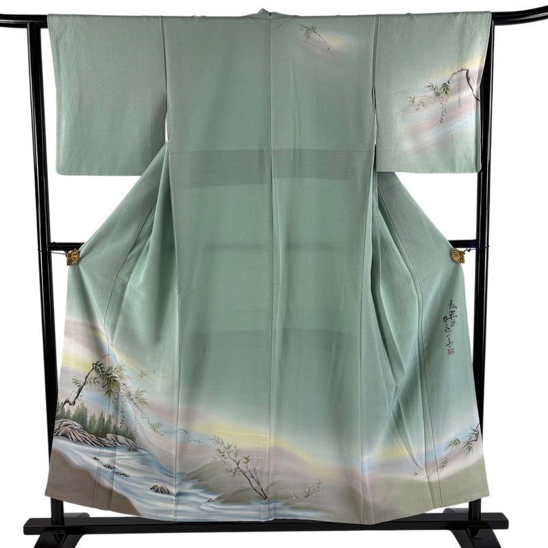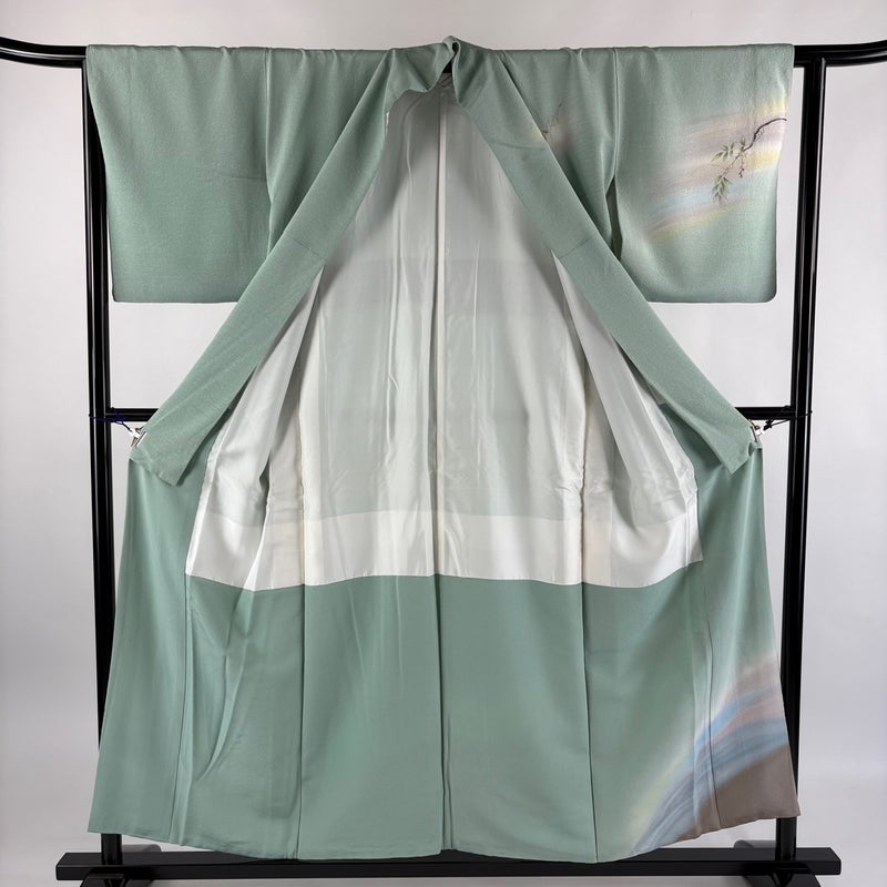 【訪問着】 緑系 薄緑 秀品 B 約150cm~約159cm 裄丈63cm-64cm (S)size 袖丈46cm以下 7990-9980 二万以下