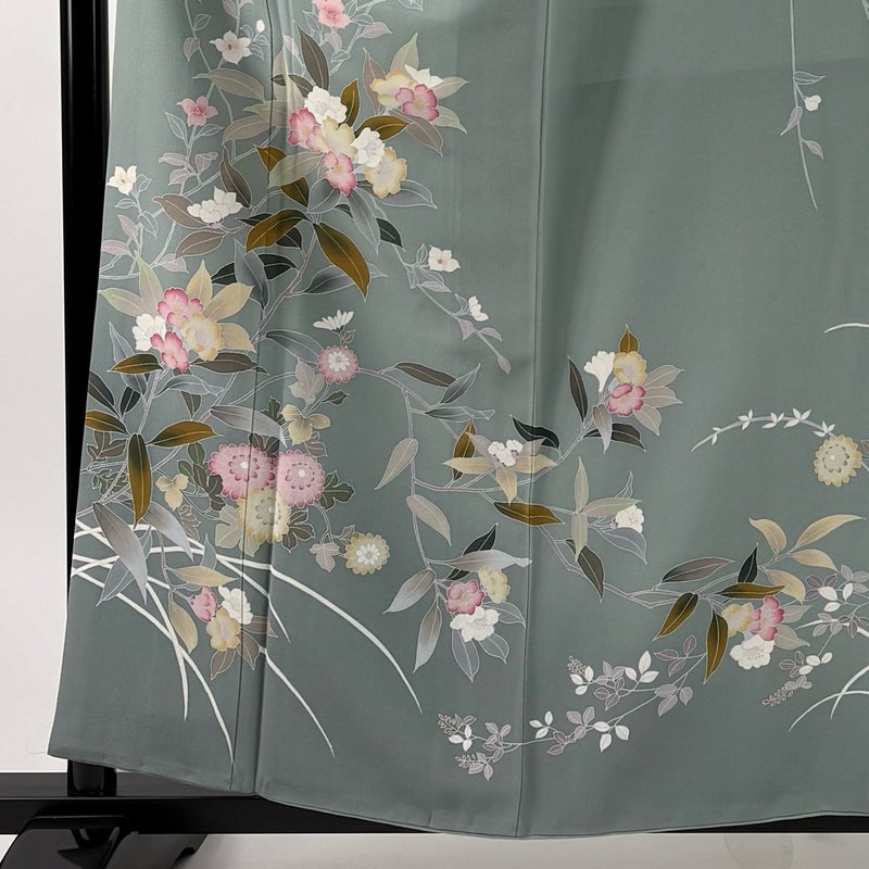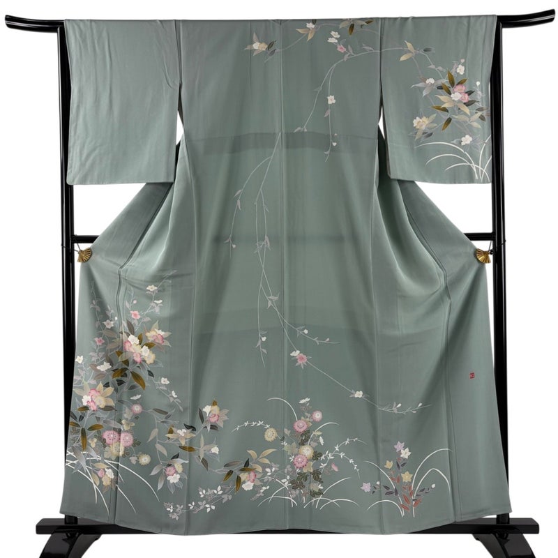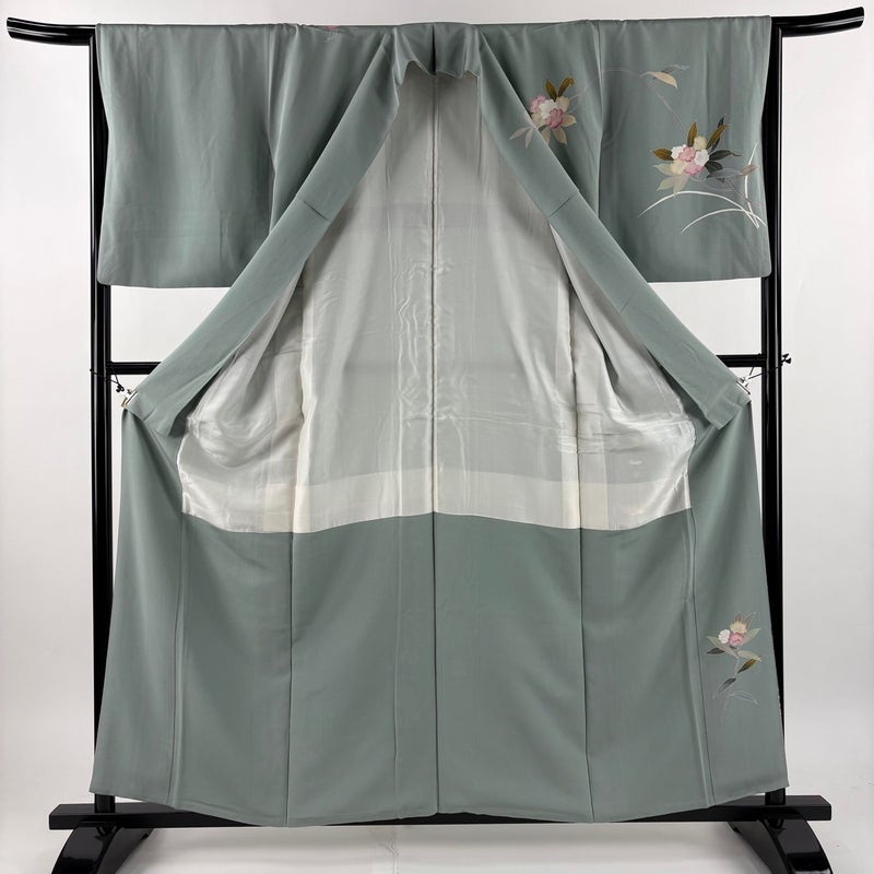 【訪問着】 灰色系 灰緑 秀品 B 約150cm~約159cm 裄丈65cm (M)size 袖丈50cm-60cm 7990-9980 二万以下