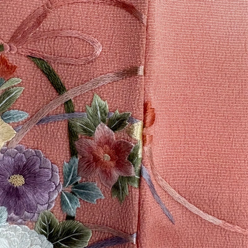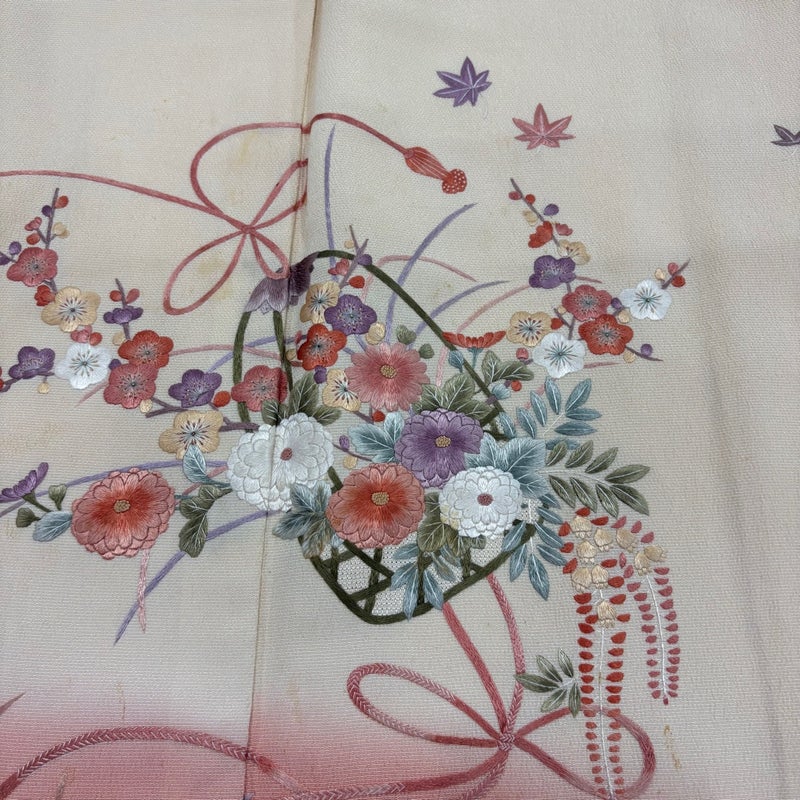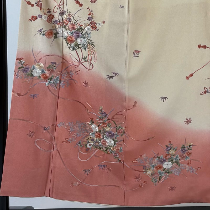 【着物ランク】秀品 【素材】正絹 【身丈】約153.5cm 【裄丈】約62cm 【袖丈】約48cm 【袖幅】約32.5cm 【前幅】約24cm 【後幅】約29cm 【サイズ】S 【着物仕立て】袷 【着用時期】10~5月 【状態ランク】ランクC 【着物着用シーン】披露宴、パーティー、お見合い、式典、茶会