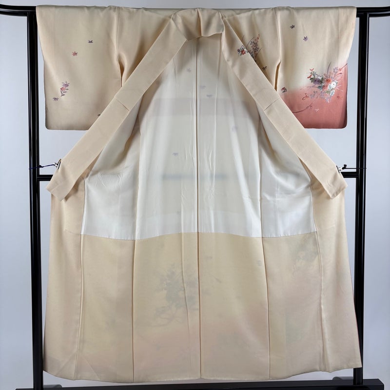 【訪問着】 白系 ベージュ 秀品 C 約150cm~約159cm 裄丈62cm以下 (S)size 袖丈48cm 7990-9980 二万以下