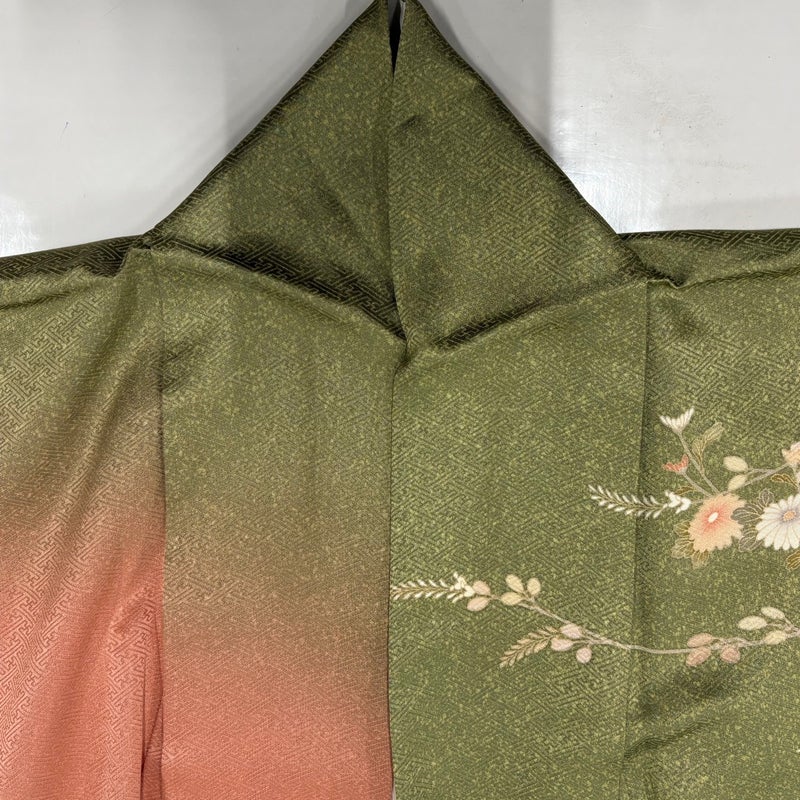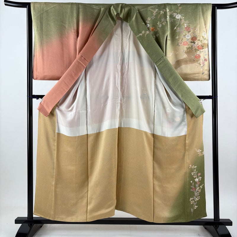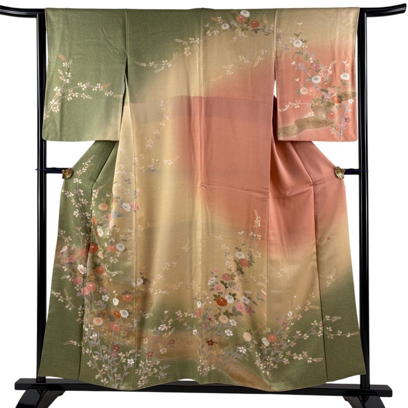 【訪問着】 緑系 よもぎ色 秀品 B 約150cm~約159cm 裄丈63cm-64cm (M)size 袖丈50cm-60cm 7990-9980 二万以下