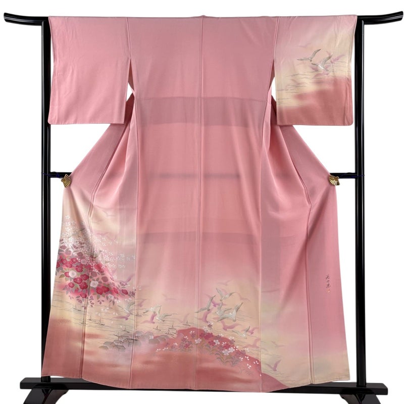 【訪問着】 赤系 ピンク 秀品 B 約150cm~約159cm 裄丈63cm-64cm (S)size 袖丈47cm 7990-9980 二万以下