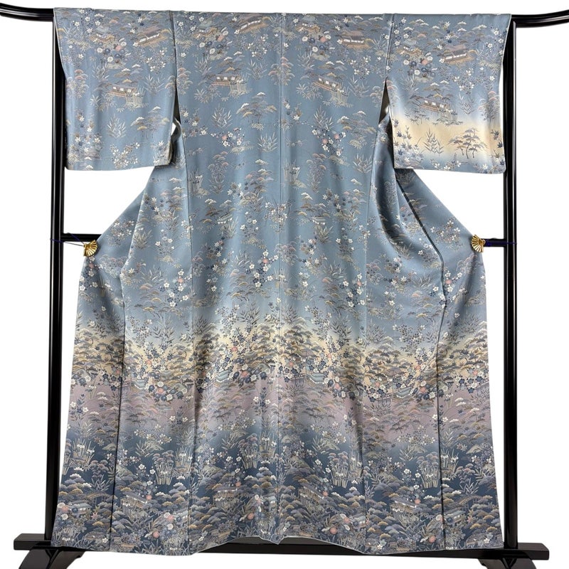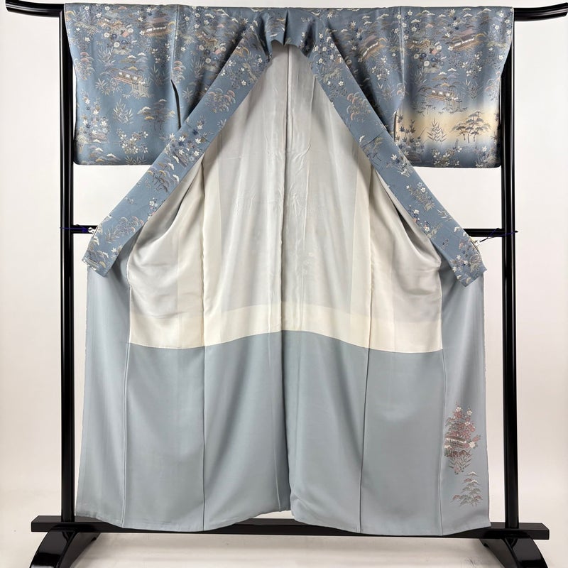 【訪問着】 灰色系 青灰色 秀品 C 約150cm~約159cm 裄丈67cm-68cm (M)size 袖丈48cm 7990-9980 二万以下