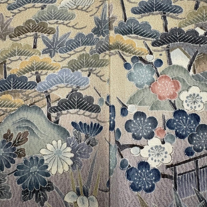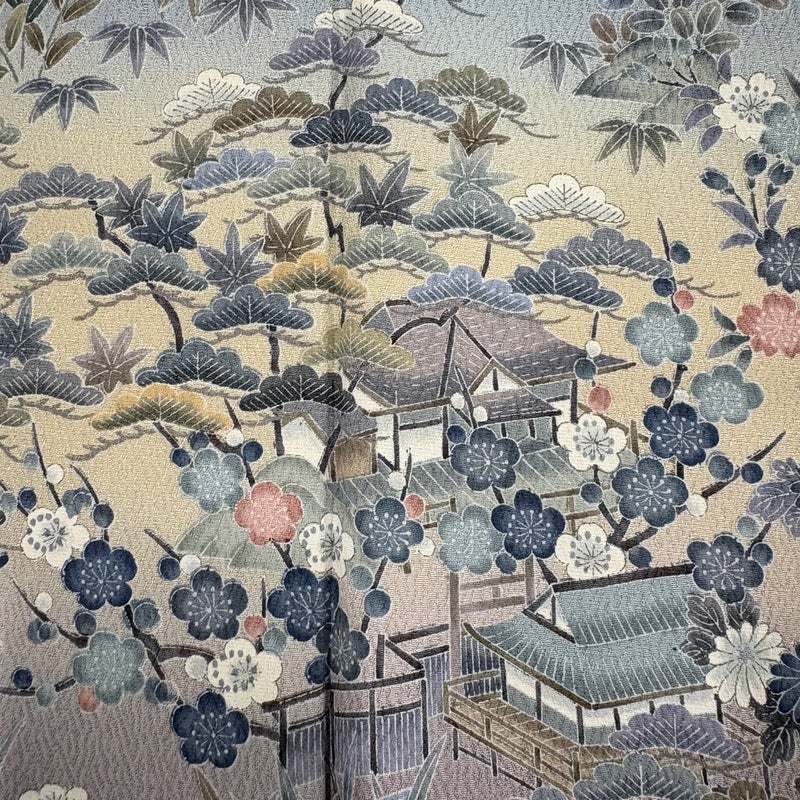 【着物ランク】秀品 【素材】正絹 【身丈】約156cm 【裄丈】約67cm 【袖丈】約48cm 【袖幅】約33.5cm 【前幅】約24cm 【後幅】約29.5cm 【サイズ】M 【着物仕立て】袷 【着用時期】10~5月 【状態ランク】ランクC 【着物着用シーン】披露宴、パーティー、お見合い、式典、茶会