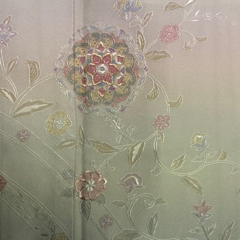 【着物ランク】秀品 【素材】正絹 【身丈】約153.5cm 【裄丈】約67.5cm 【袖丈】約49cm 【袖幅】約33.5cm 【前幅】約24.5cm 【後幅】約29.5cm 【サイズ】L 【着物仕立て】袷 【着用時期】10~5月 【状態ランク】ランクB 【着物着用シーン】披露宴、パーティー、お見合い、式典、茶会