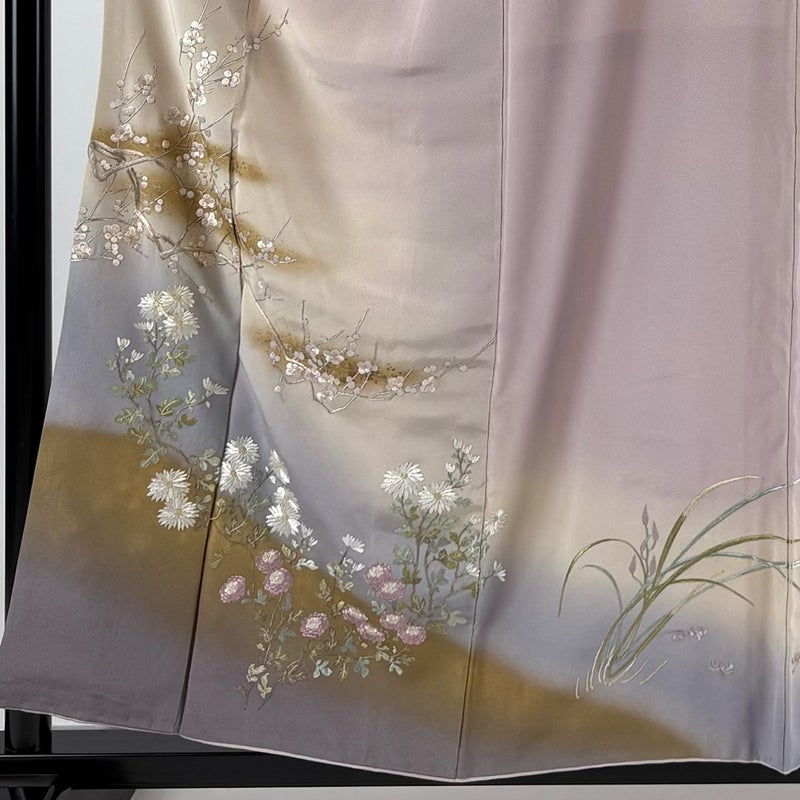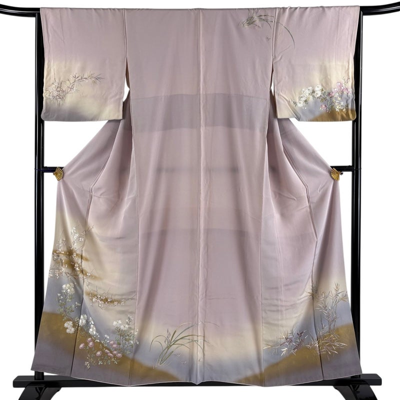 【着物ランク】秀品 【素材】正絹 【身丈】約158cm 【裄丈】約66.5cm 【袖丈】約49cm 【袖幅】約34.5cm 【前幅】約25cm 【後幅】約29.5cm 【サイズ】M 【着物仕立て】袷 【着用時期】10~5月 【状態ランク】ランクC 【着物着用シーン】披露宴、パーティー、お見合い、式典、茶会