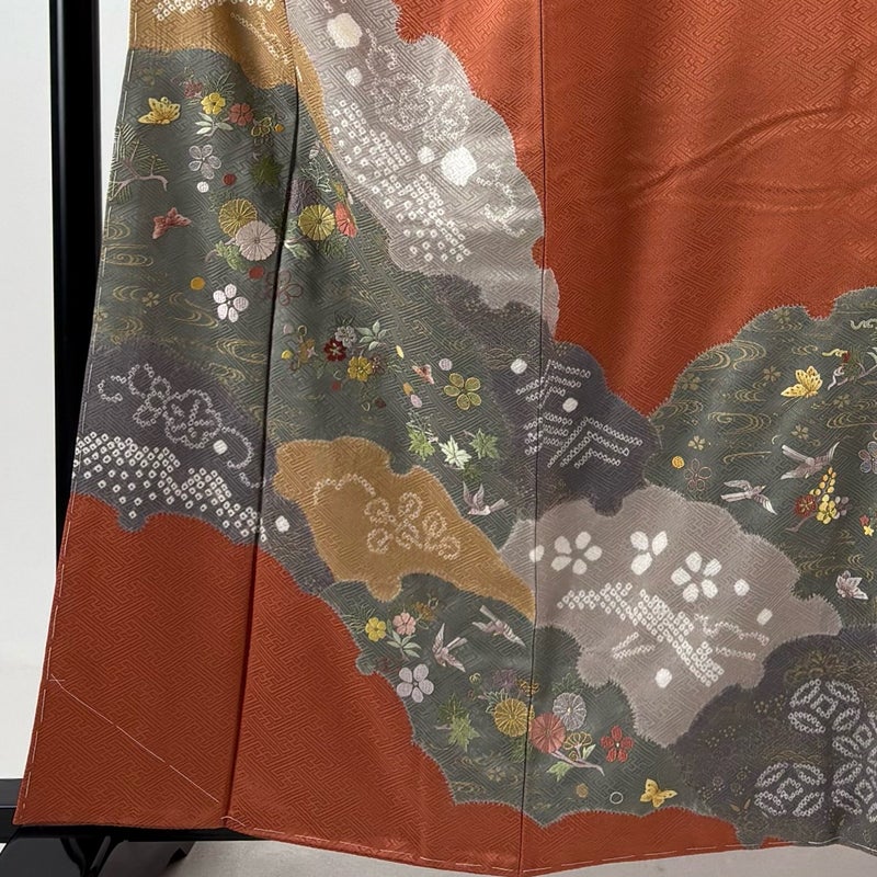 【訪問着】 赤系 赤茶 秀品 B 約160cm~約169cm 裄丈63cm-64cm (M)size 袖丈50cm-60cm 7990-9980 二万以下