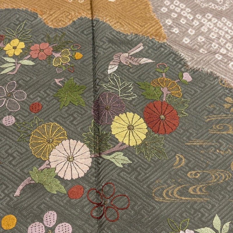 【着物ランク】秀品 【素材】正絹 【身丈】約160cm 【裄丈】約64.5cm 【袖丈】約55.5cm 【袖幅】約33.5cm 【前幅】約24cm 【後幅】約30.5cm 【サイズ】M 【着物仕立て】袷 【着用時期】10~5月 【状態ランク】ランクB 【着物着用シーン】披露宴、パーティー、お見合い、式典、茶会
