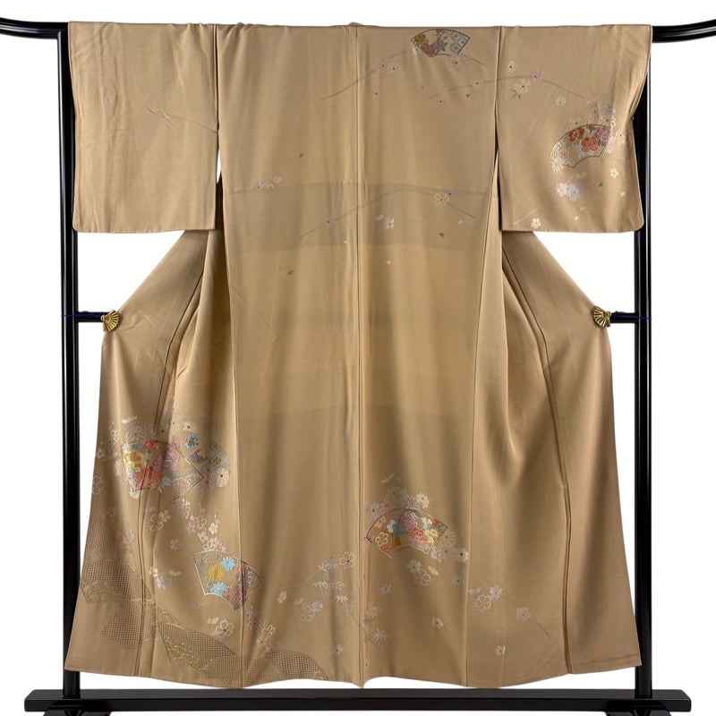 【訪問着】 茶系 薄茶色 秀品 B 約150cm~約159cm 裄丈67cm-68cm (M)size 袖丈48cm 7990-9980 二万以下
