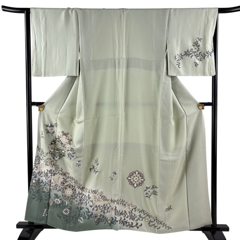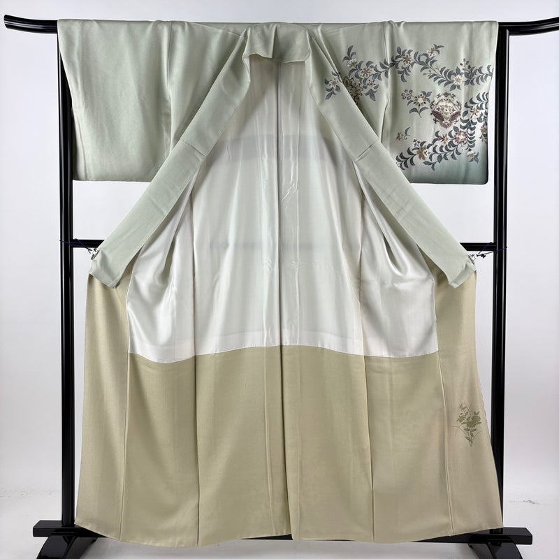 【訪問着】 灰色系 灰緑 秀品 A 約150cm~約159cm 裄丈65cm (M)size 袖丈48cm 9990-29990 美品 二万以下