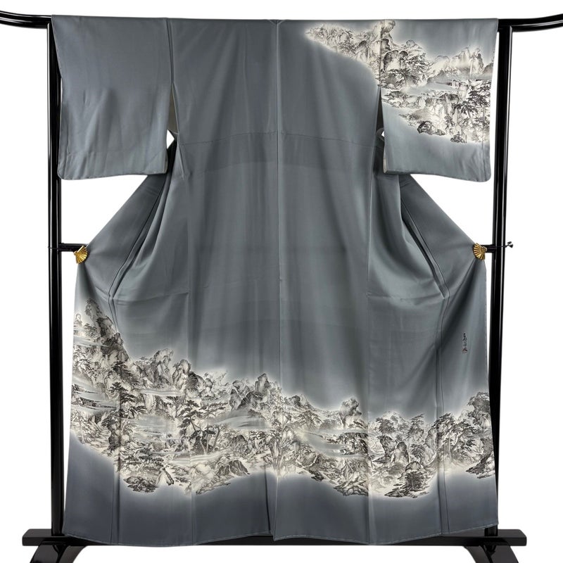 【訪問着】 灰色系 灰色 秀品 B 約150cm~約159cm 裄丈65cm (M)size 袖丈49cm 7990-9980 二万以下