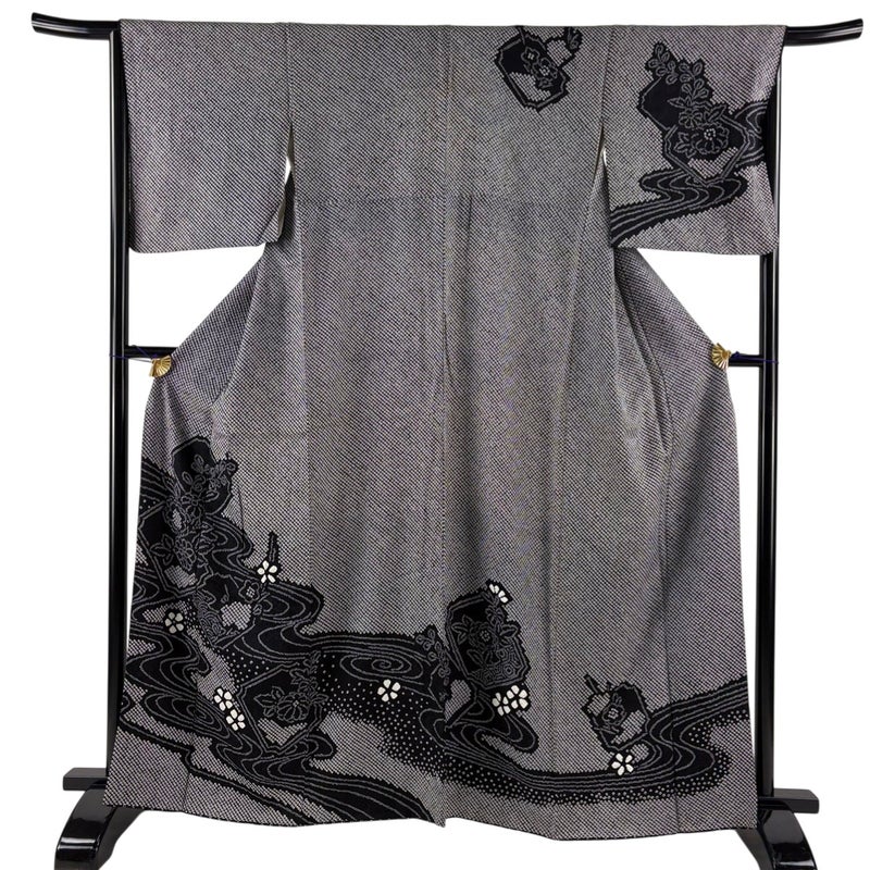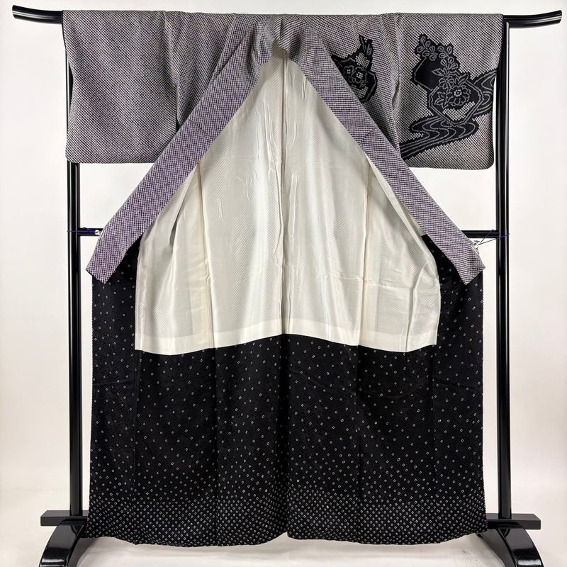 【訪問着】 黒系 黒 秀品 B 約160cm~約169cm 裄丈66cm (M)size 袖丈48cm 7990-9980 二万以下
