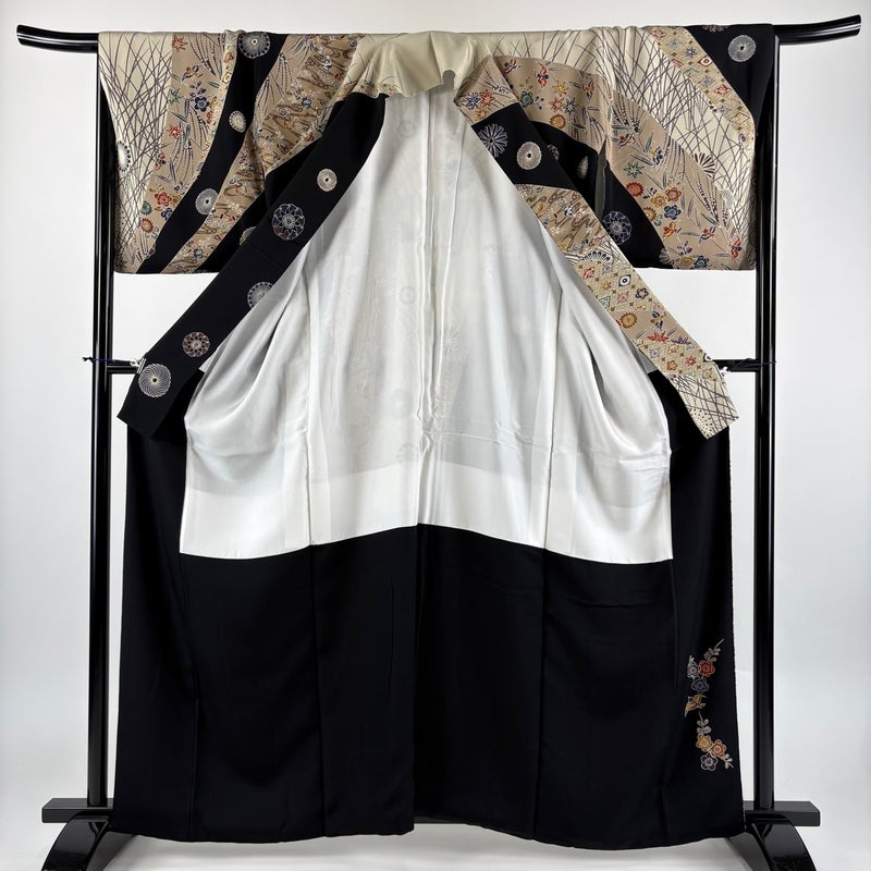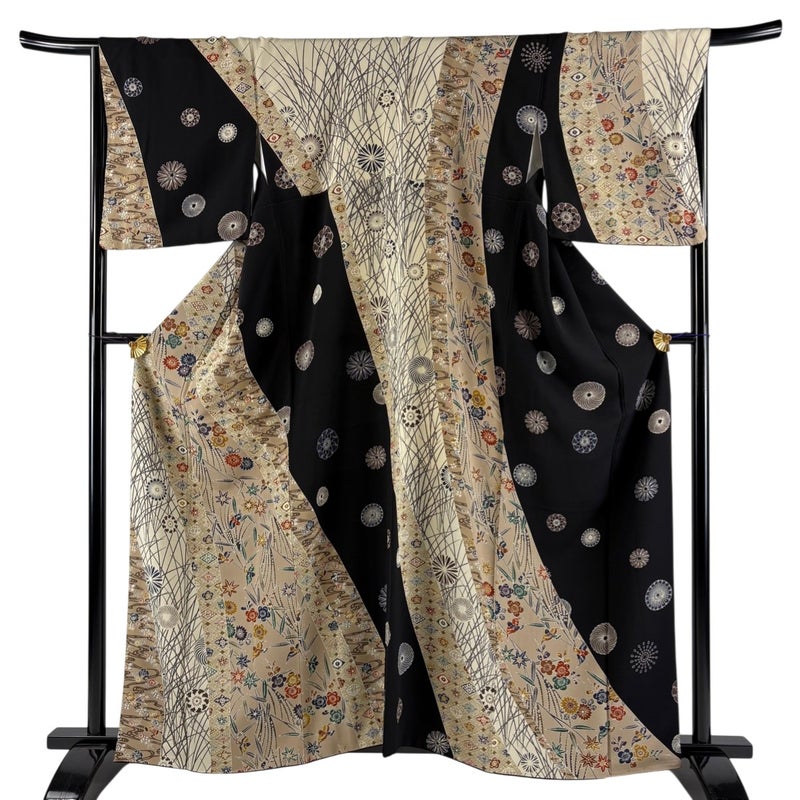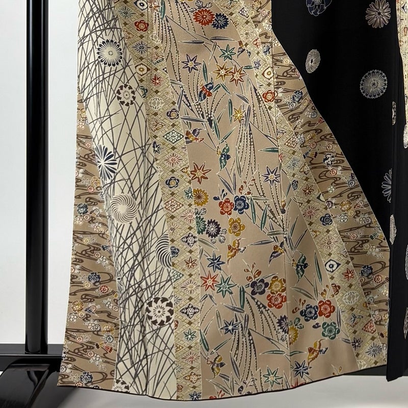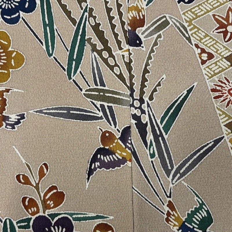 【着物ランク】秀品 【素材】正絹 【身丈】約161.5cm 【裄丈】約67cm 【袖丈】約49cm 【袖幅】約34cm 【前幅】約26.5cm 【後幅】約30.5cm 【サイズ】M 【着物仕立て】袷 【着用時期】10~5月 【状態ランク】ランクB 【着物着用シーン】披露宴、パーティー、お見合い、式典、茶会