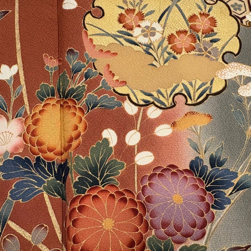 【訪問着】 赤系 赤茶 秀品 B 約160cm~約169cm 裄丈63cm-64cm (S)size 袖丈48cm 7990-9980 二万以下