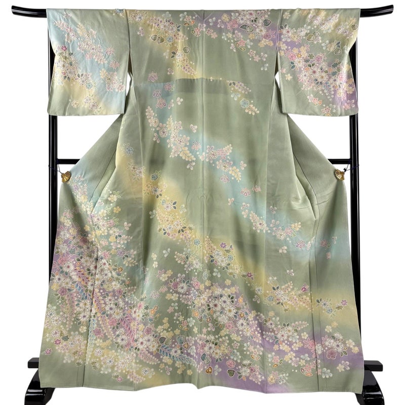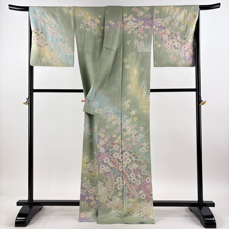 【訪問着】 緑系 薄緑 逸品 B 約160cm~約169cm 裄丈69cm以上 (L)size 袖丈49cm 30000- 五万以上