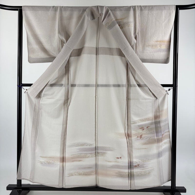 【着物ランク】秀品 【素材】正絹 【身丈】約157.5cm 【裄丈】約63cm 【袖丈】約48cm 【袖幅】約32.5cm 【前幅】約26cm 【後幅】約31cm 【サイズ】S 【着物仕立て】薄物 【着用時期】7~8月 【状態ランク】ランクB 【着物着用シーン】披露宴、パーティー、お見合い、式典、茶会