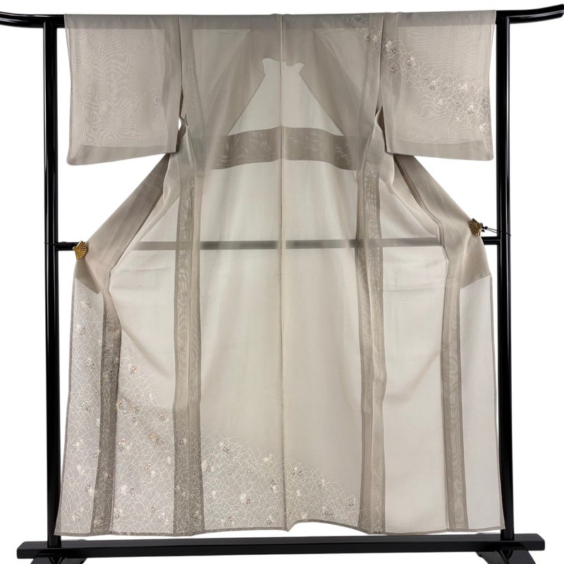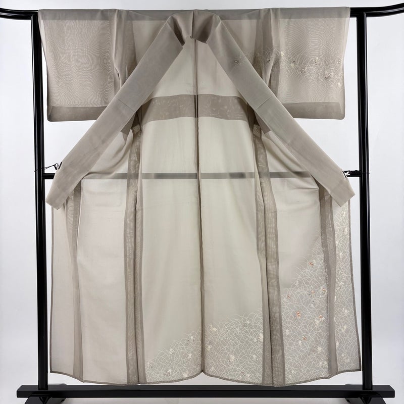 【訪問着】 灰色系 灰茶 秀品 A 約150cm~約159cm 裄丈62cm以下 (S)size 袖丈46cm以下 9990-29990 美品 二万以下