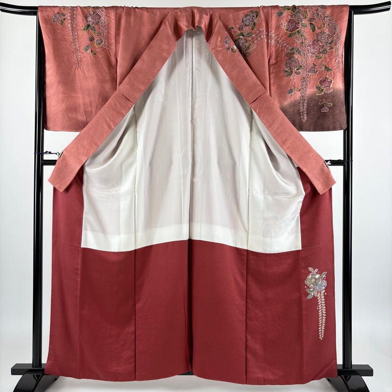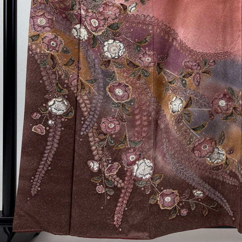 【着物ランク】秀品 【素材】正絹 【身丈】約160.5cm 【裄丈】約67cm 【袖丈】約55cm 【袖幅】約33.5cm 【前幅】約23.5cm 【後幅】約30cm 【サイズ】M 【着物仕立て】袷 【着用時期】10~5月 【状態ランク】ランクB 【着物着用シーン】披露宴、パーティー、お見合い、式典、茶会