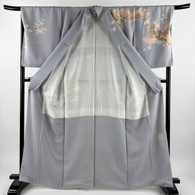 【訪問着】 灰色系 青灰色 秀品 C 約160cm~約169cm 裄丈69cm以上 (L)size 袖丈50cm-60cm 7990-9980 二万以下