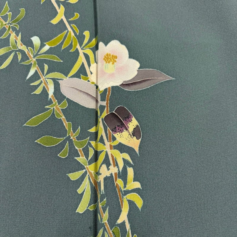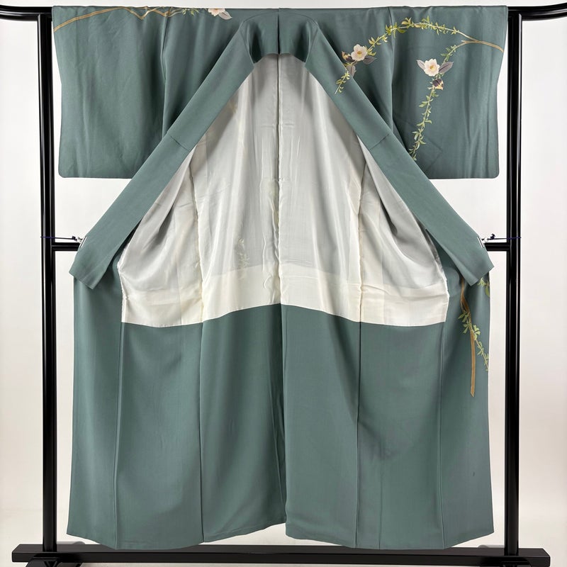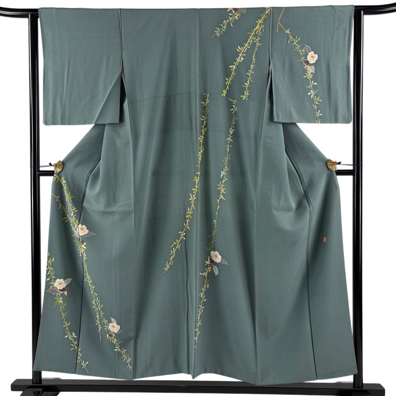 【訪問着】 灰色系 灰緑 秀品 C 約150cm~約159cm 裄丈63cm-64cm (S)size 袖丈49cm 7990-9980 二万以下