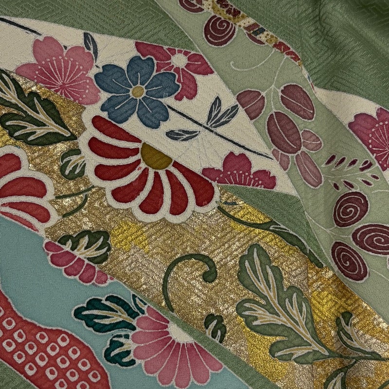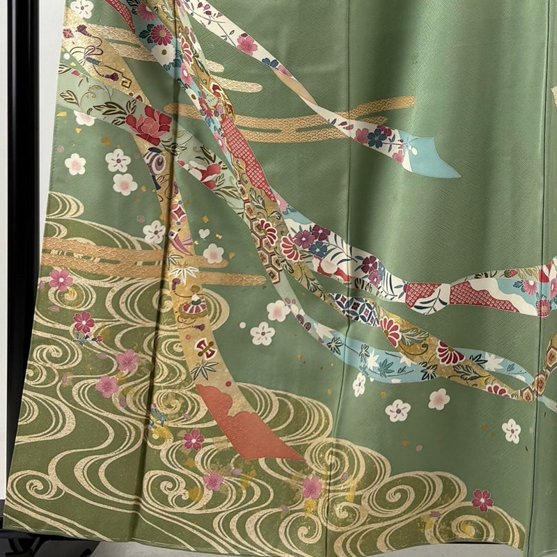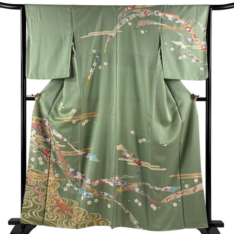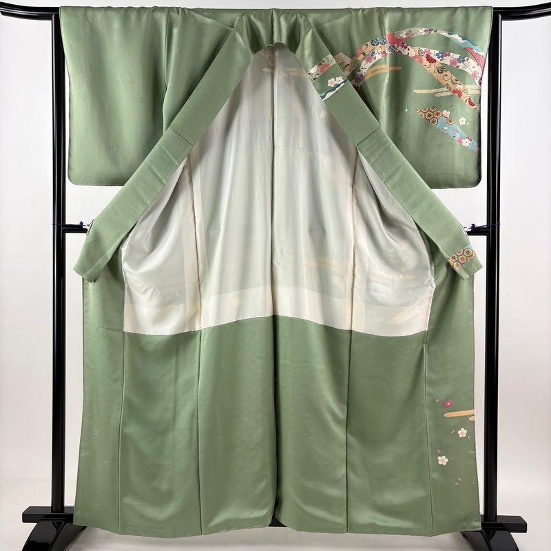 【訪問着】 緑系 薄緑 秀品 B 約160cm~約169cm 裄丈63cm-64cm (S)size 袖丈50cm-60cm 7990-9980 二万以下