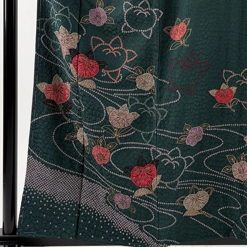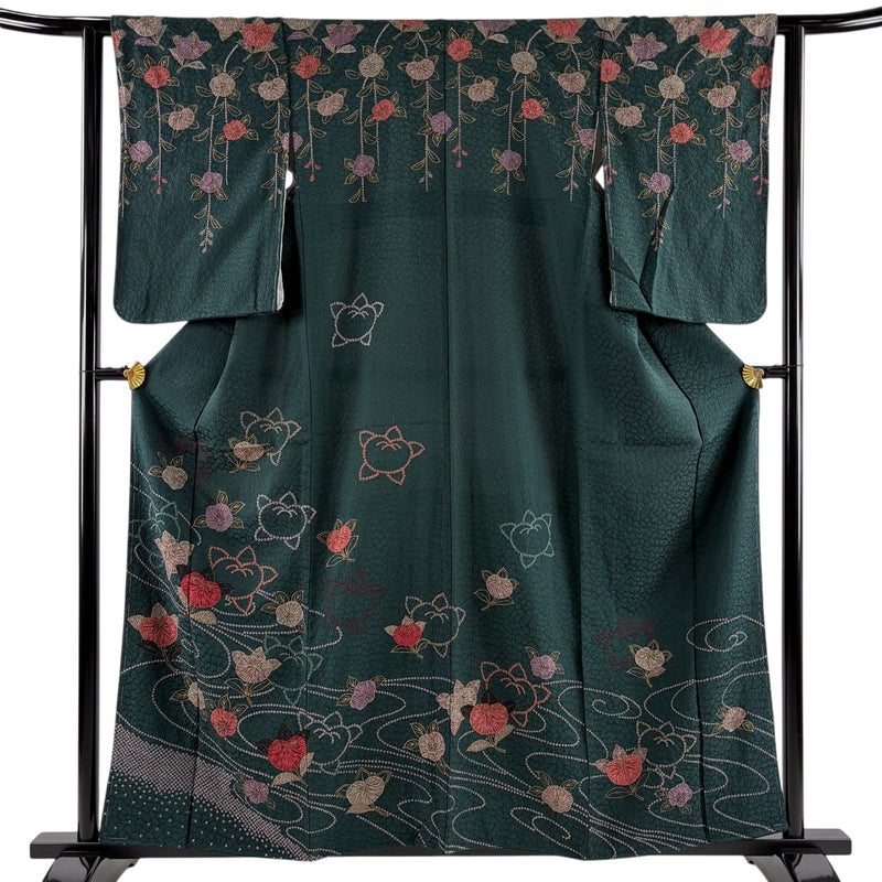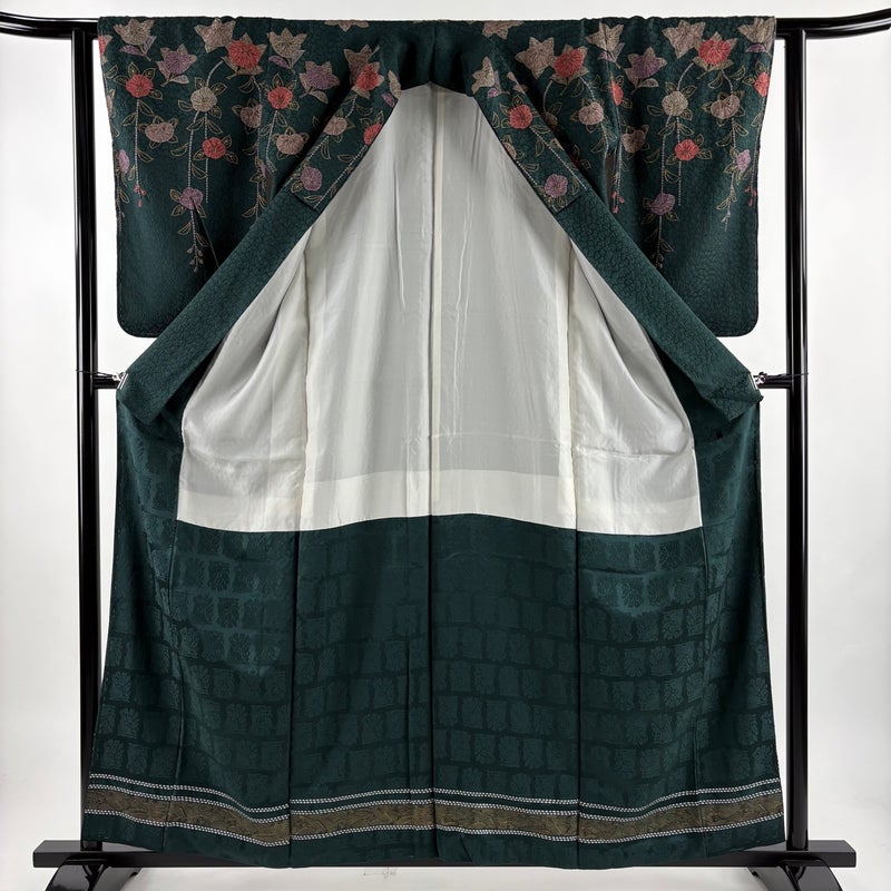 【訪問着】 緑系 深緑 秀品 B 約150cm~約159cm 裄丈62cm以下 (S)size 袖丈50cm-60cm 7990-9980 二万以下