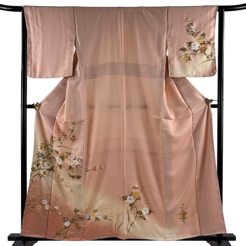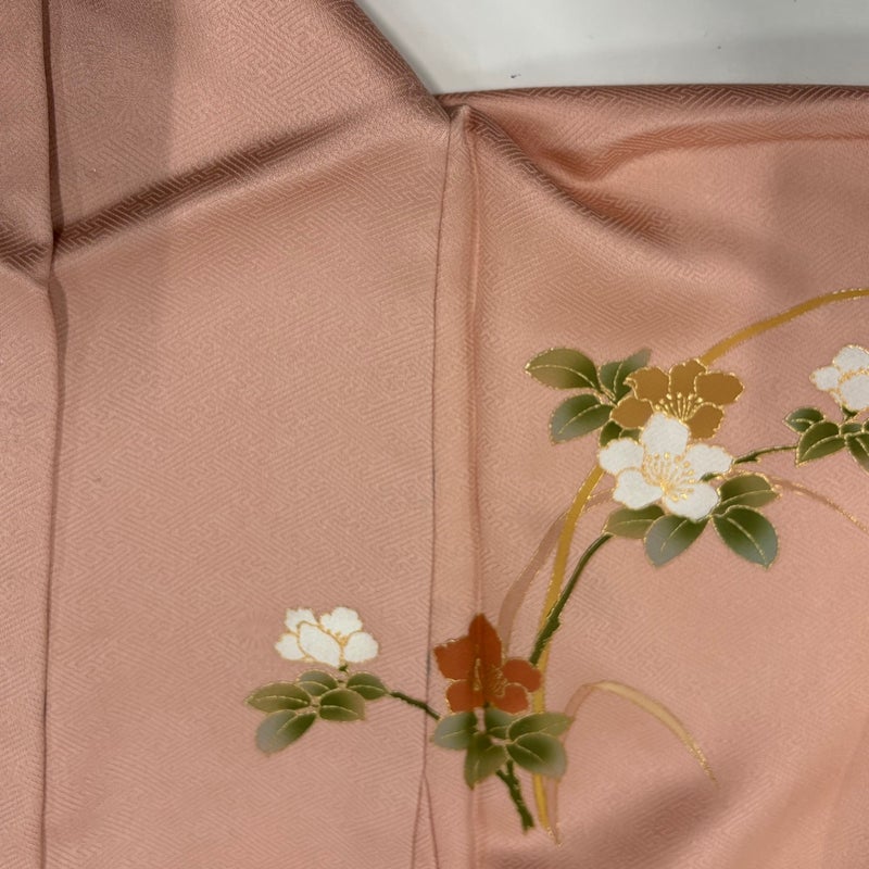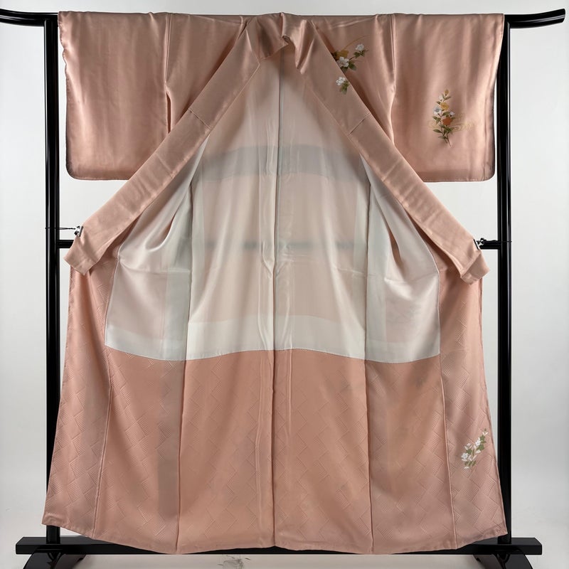 【訪問着】 赤系 サーモンピンク 秀品 A 約150cm~約159cm 裄丈63cm-64cm (M)size 袖丈48cm 9990-29990 美品 二万以下