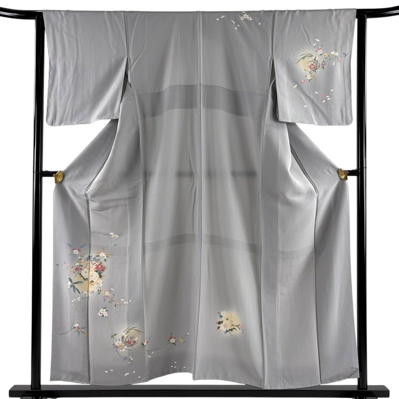 【訪問着】 灰色系 灰色 秀品 B 約150cm~約159cm 裄丈63cm-64cm (S)size 袖丈48cm 7990-9980 二万以下