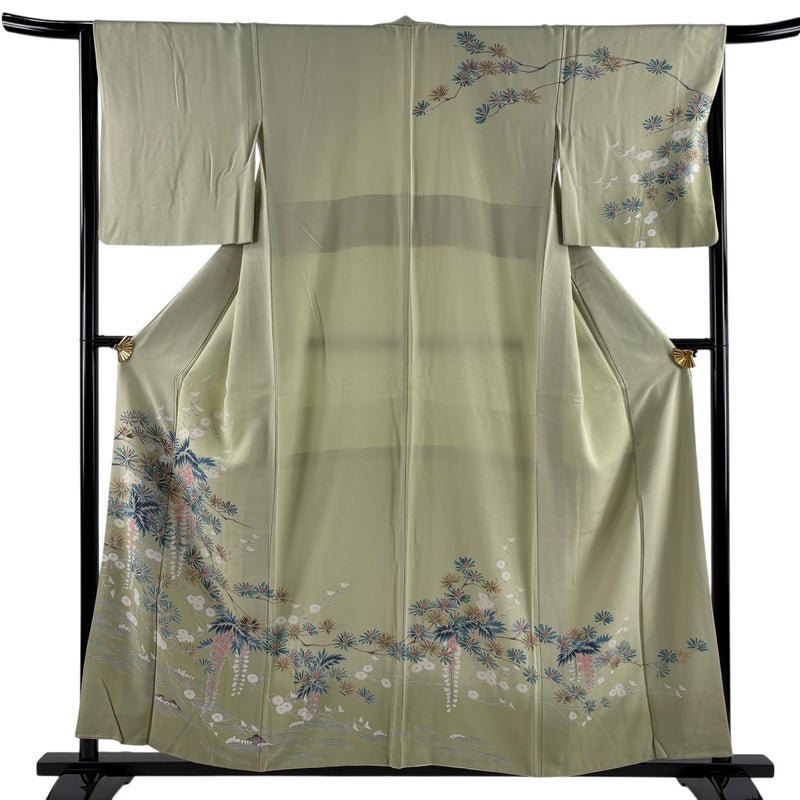 【訪問着】 緑系 薄緑 秀品 B 約150cm~約159cm 裄丈63cm-64cm (M)size 袖丈47cm 7990-9980 二万以下