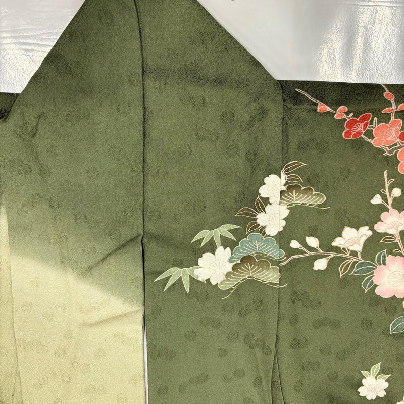 【訪問着】 灰色系 灰緑 秀品 B 約160cm~約169cm 裄丈67cm-68cm (M)size 袖丈49cm 7990-9980 二万以下
