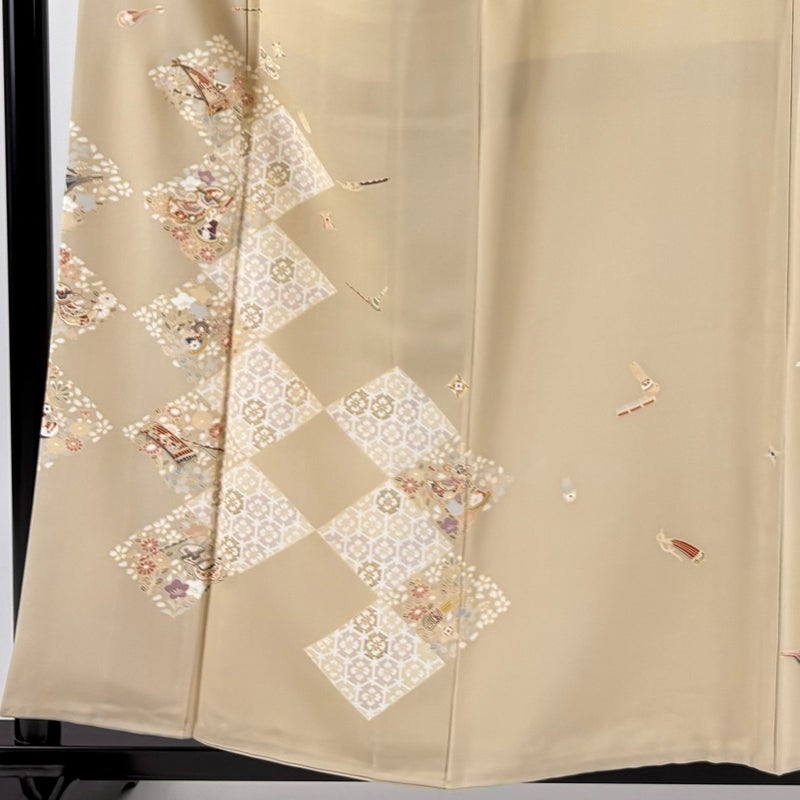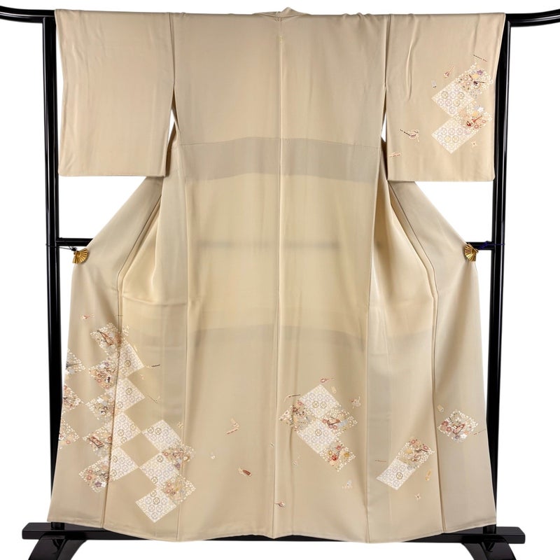 【訪問着】 白系 ベージュ 秀品 B 約150cm~約159cm 裄丈63cm-64cm (M)size 袖丈49cm 7990-9980 二万以下