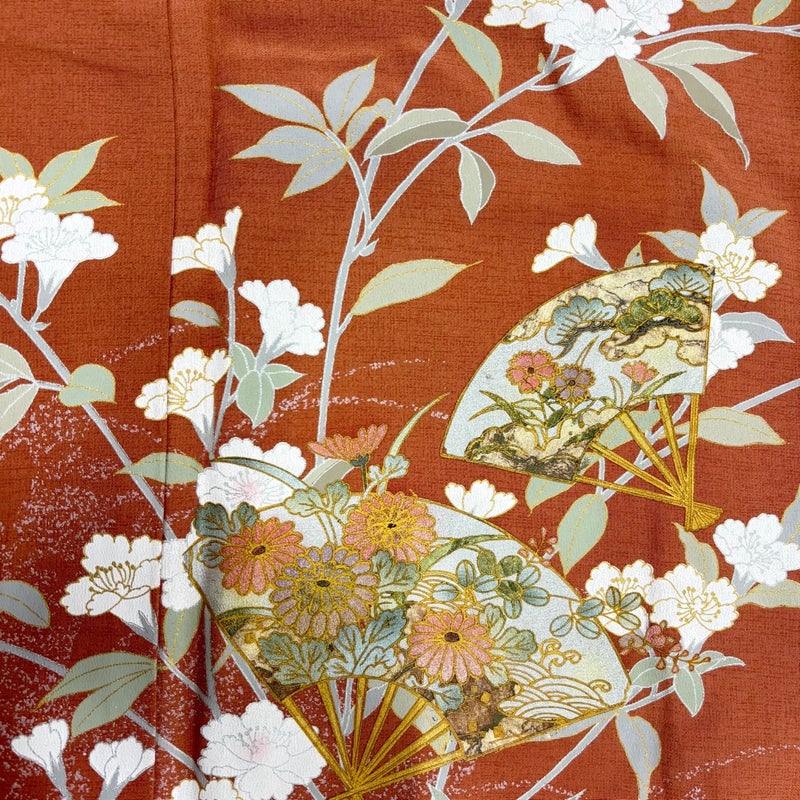 【訪問着】 赤系 茜色 秀品 B 約150cm~約159cm 裄丈63cm-64cm (S)size 袖丈50cm-60cm 7990-9980 二万以下