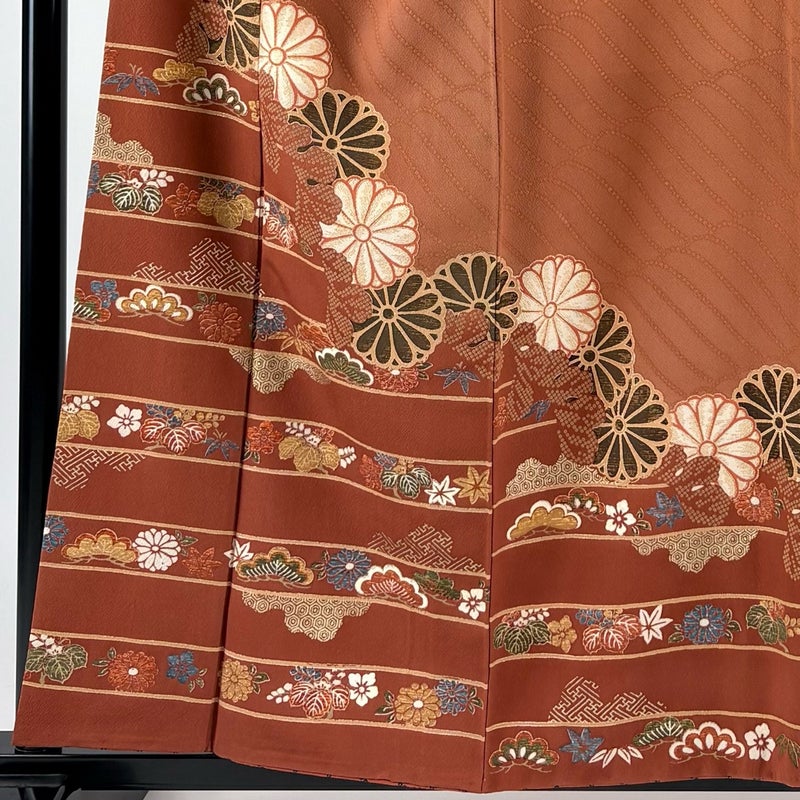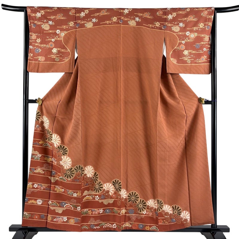 【訪問着】 茶系 茶色 秀品 B 約150cm~約159cm 裄丈63cm-64cm (M)size 袖丈48cm 7990-9980 二万以下