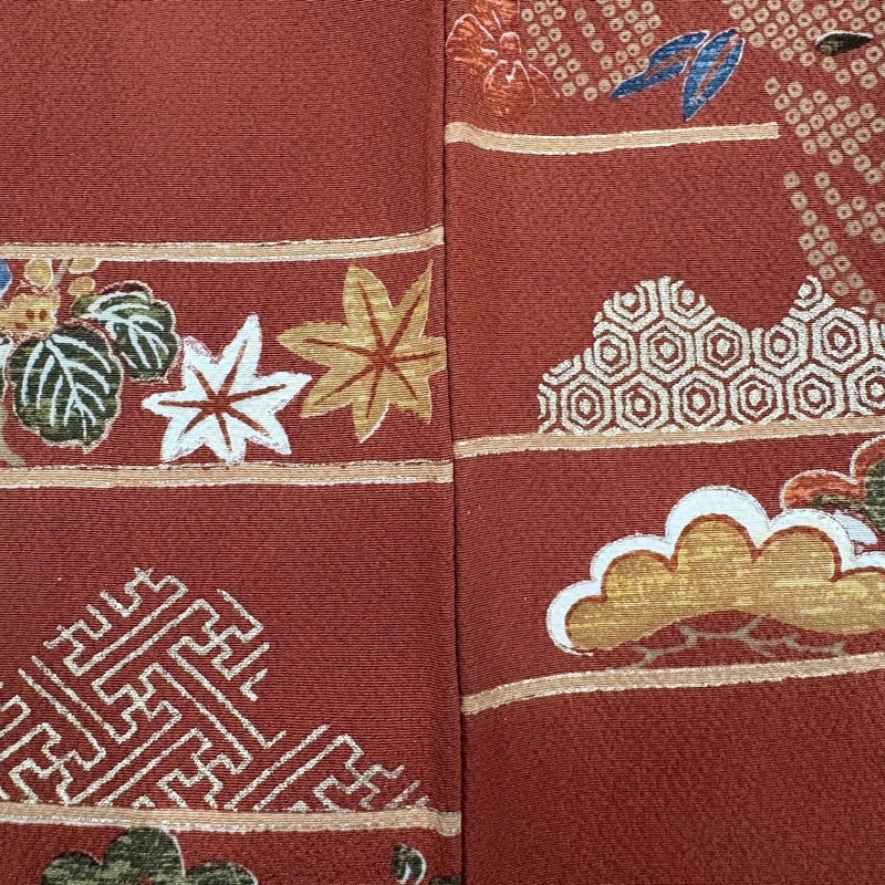 【着物ランク】秀品 【素材】正絹 【身丈】約157.5cm 【裄丈】約64.5cm 【袖丈】約48cm 【袖幅】約33cm 【前幅】約24.5cm 【後幅】約30.5cm 【サイズ】M 【着物仕立て】袷 【着用時期】10~5月 【状態ランク】ランクB 【着物着用シーン】披露宴、パーティー、お見合い、式典、茶会