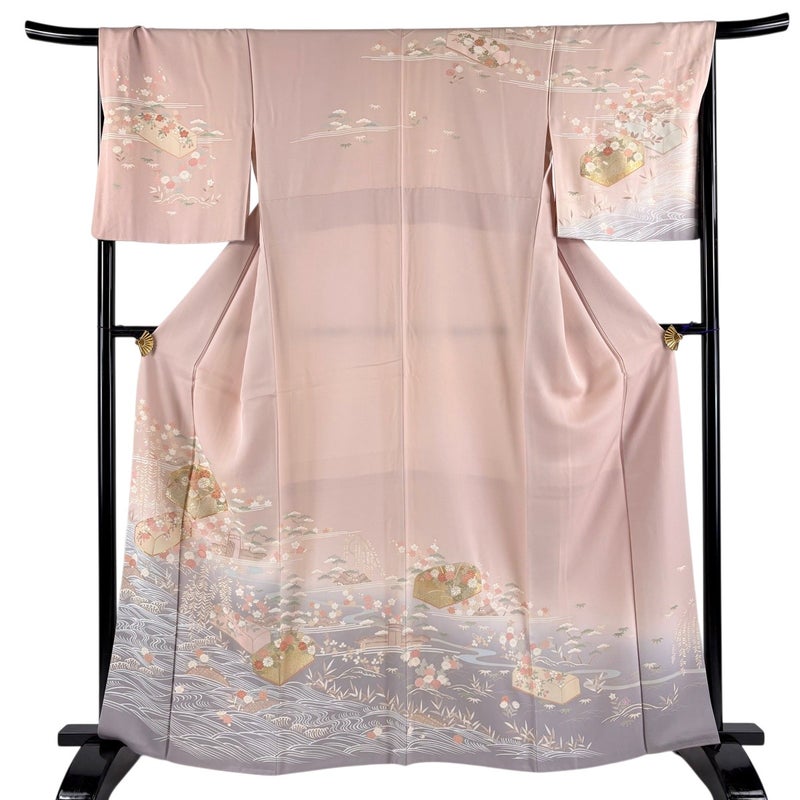 【着物ランク】秀品 【素材】正絹 【身丈】約163cm 【裄丈】約67.5cm 【袖丈】約49cm 【袖幅】約34cm 【前幅】約24.5cm 【後幅】約29cm 【サイズ】L 【着物仕立て】袷 【着用時期】10~5月 【状態ランク】ランクB 【着物着用シーン】披露宴、パーティー、お見合い、式典、茶会