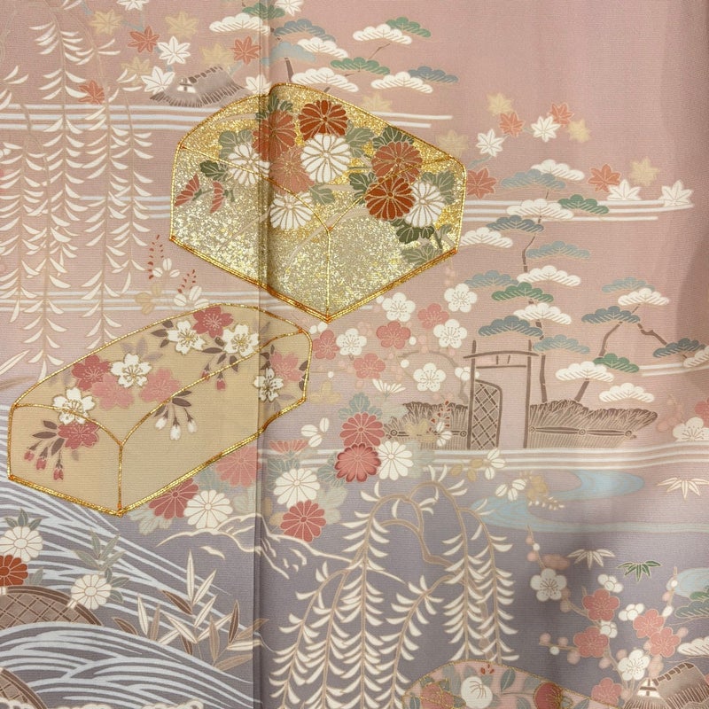 【訪問着】 赤系 ピンクベージュ 秀品 B 約160cm~約169cm 裄丈67cm-68cm (L)size 袖丈49cm 7990-9980 二万以下