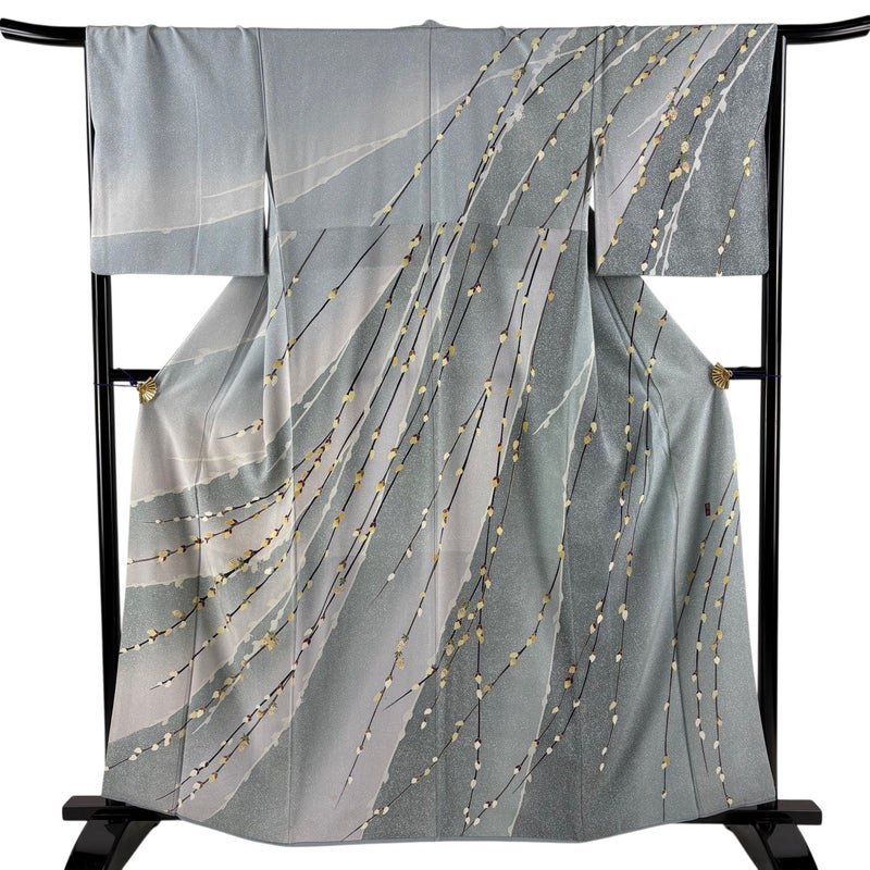 【着物ランク】秀品 【素材】正絹 【身丈】約162cm 【裄丈】約66.5cm 【袖丈】約49.5cm 【袖幅】約34.5cm 【前幅】約24.5cm 【後幅】約30cm 【サイズ】M 【着物仕立て】袷 【着用時期】10~5月 【状態ランク】ランクC 【着物着用シーン】披露宴、パーティー、お見合い、式典、茶会