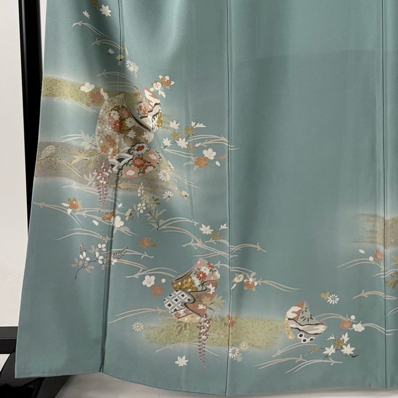 【着物ランク】秀品 【素材】正絹 【身丈】約166.5cm 【裄丈】約68cm 【袖丈】約48.5cm 【袖幅】約35.5cm 【前幅】約24.5cm 【後幅】約30cm 【サイズ】L 【着物仕立て】袷 【着用時期】10~5月 【状態ランク】ランクC 【着物着用シーン】披露宴、パーティー、お見合い、式典、茶会