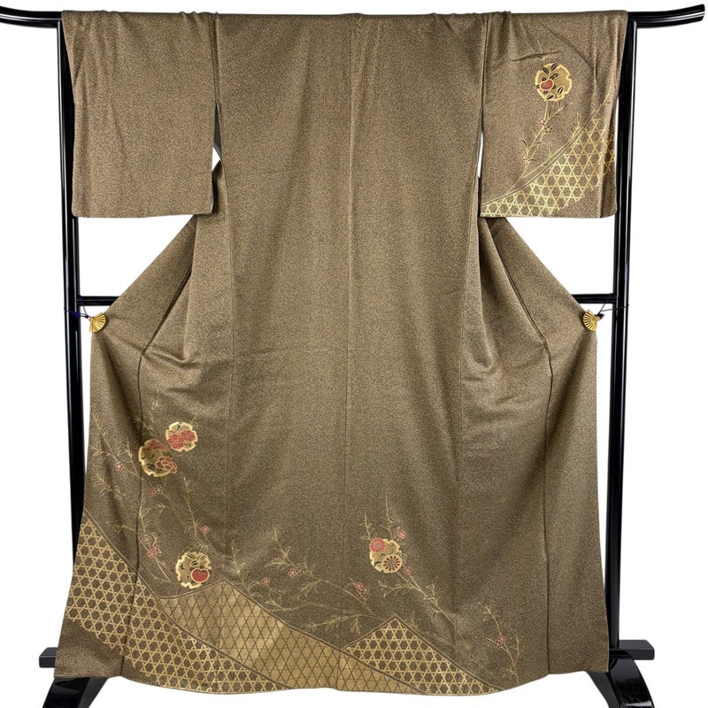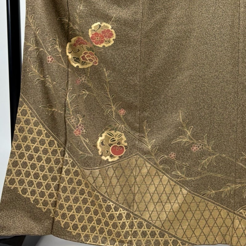 【着物ランク】秀品 【素材】正絹 【身丈】約166cm 【裄丈】約65.5cm 【袖丈】約49cm 【袖幅】約34cm 【前幅】約24cm 【後幅】約30cm 【サイズ】M 【着物仕立て】袷 【着用時期】10~5月 【状態ランク】ランクA 【着物着用シーン】披露宴、パーティー、お見合い、式典、茶会
