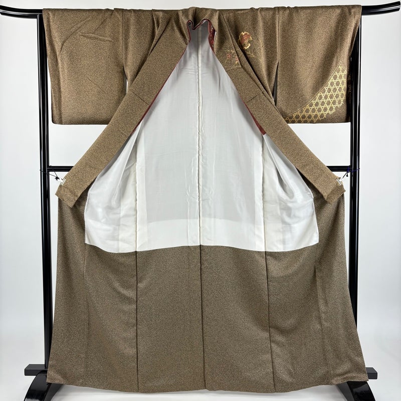 【訪問着】 茶系 茶色 秀品 A 約160cm~約169cm 裄丈65cm (M)size 袖丈49cm 9990-29990 美品 二万以下