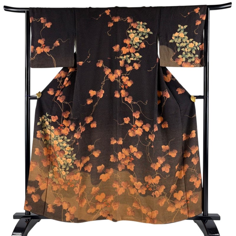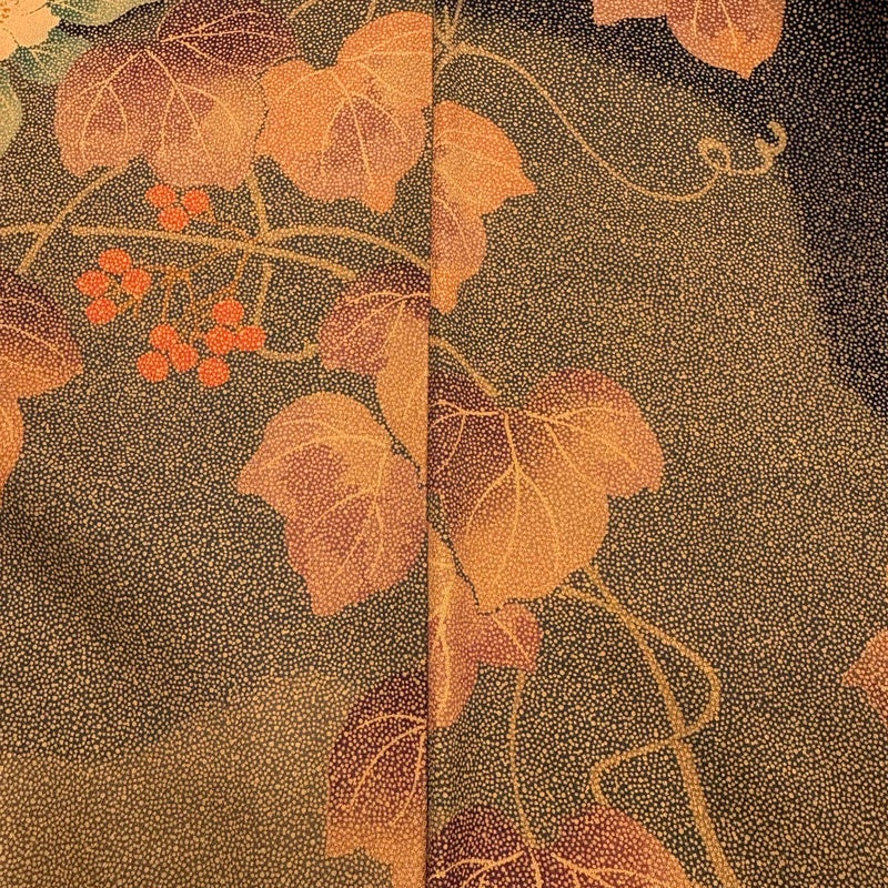 【着物ランク】秀品 【素材】正絹 【身丈】約159cm 【裄丈】約65cm 【袖丈】約45.5cm 【袖幅】約34cm 【前幅】約27cm 【後幅】約30cm 【サイズ】M 【着物仕立て】袷 【着用時期】10~5月 【状態ランク】ランクB 【着物着用シーン】披露宴、パーティー、お見合い、式典、茶会