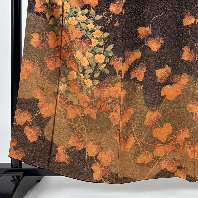 【訪問着】 茶系 焦茶色 秀品 B 約150cm~約159cm 裄丈65cm (M)size 袖丈46cm以下 7990-9980 二万以下