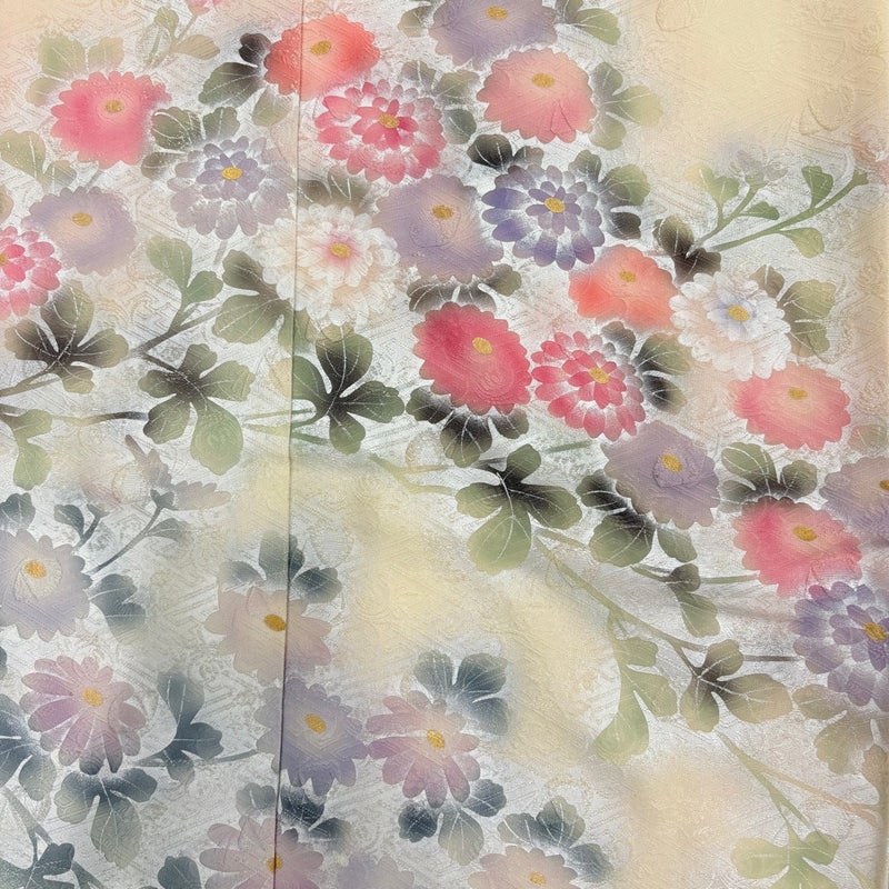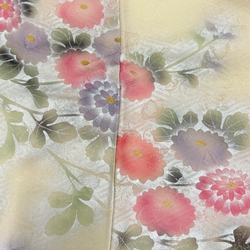 【着物ランク】秀品 【素材】正絹 【身丈】約163cm 【裄丈】約66.5cm 【袖丈】約49cm 【袖幅】約34.5cm 【前幅】約23cm 【後幅】約28.5cm 【サイズ】M 【着物仕立て】袷 【着用時期】10~5月 【状態ランク】ランクB 【着物着用シーン】披露宴、パーティー、お見合い、式典、茶会