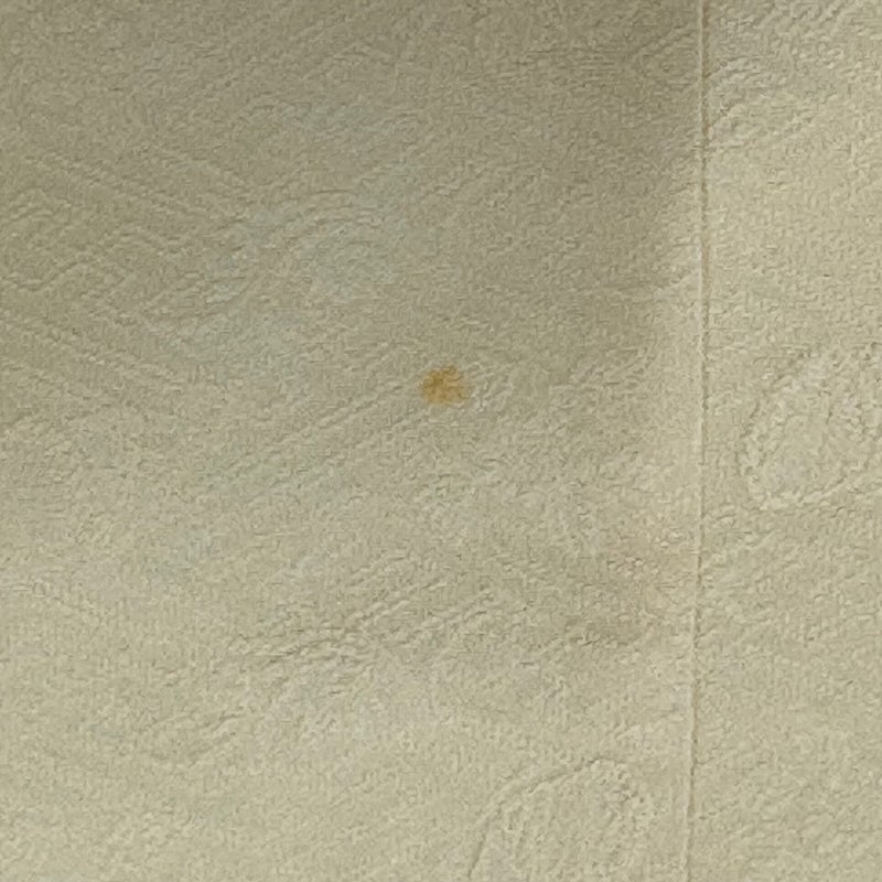 帯次第で幅広くお使いいただける素敵な訪問着です。 帯により格式を変える事の出来る印象のお着物は、様々に場面で活躍してくれることでしょう。 ※身丈・裄丈の縫込みの長さは測っておりません。 下前の裾付近と後身頃の背中付近と右前袖にシミがございます。 衿裏と胴裏にシミがございます。 また、上前から後身頃にかけて柄のズレがございます。 リユース品としては良い状態で、まだまだご活用頂けると思われます。 ※なお、厳しく商品の状態確認を行っておりますが、記載の汚れ以外にも見落とし箇所がある可能性がある旨ご了承いただけますと幸いです。 沢山の商品の中からご覧いただき誠にありがとうございます。
