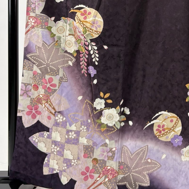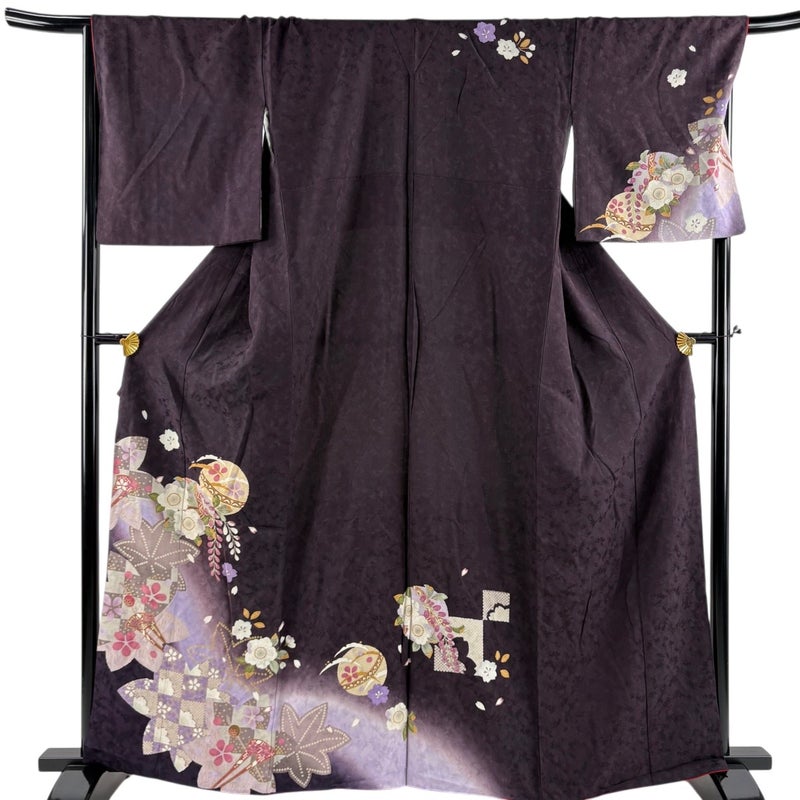 【訪問着】 紫系 濃紫 秀品 B 約160cm~約169cm 裄丈67cm-68cm (L)size 袖丈49cm 7990-9980 二万以下