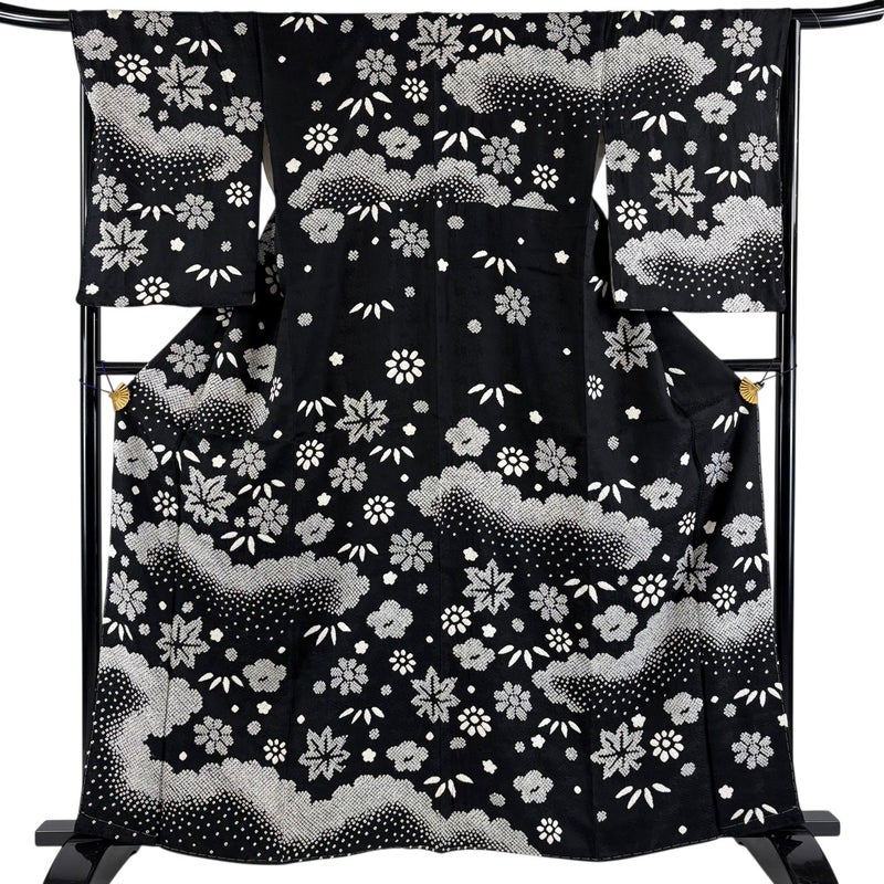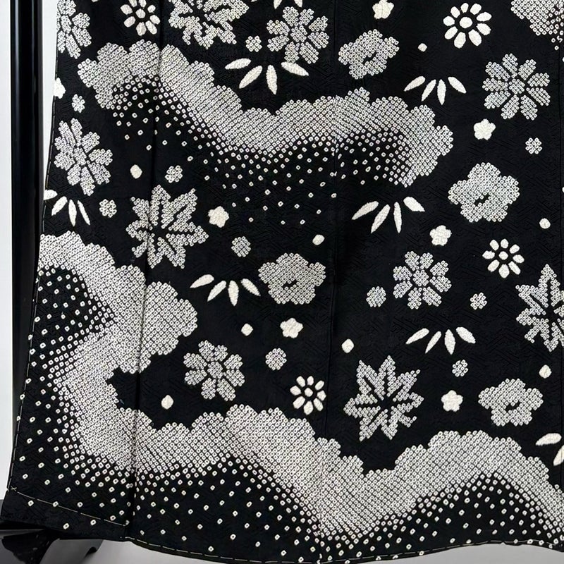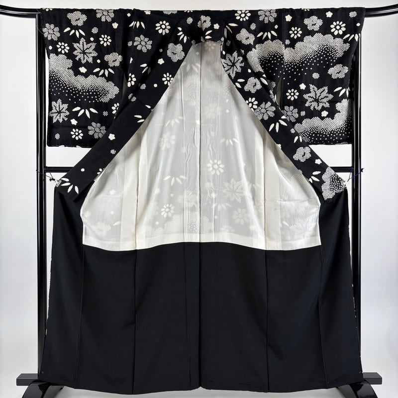 【訪問着】 黒系 黒 秀品 B 約160cm~約169cm 裄丈66cm (M)size 袖丈50cm-60cm 7990-9980 二万以下
