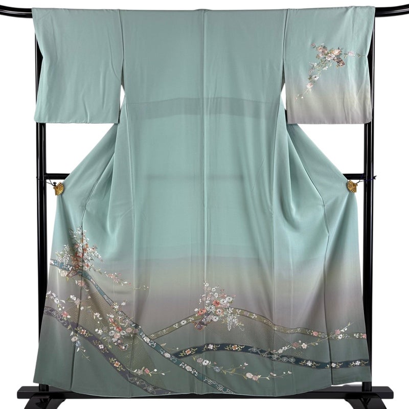 【訪問着】 緑系 薄緑 秀品 B 約150cm~約159cm 裄丈67cm-68cm (M)size 袖丈48cm 7990-9980 二万以下